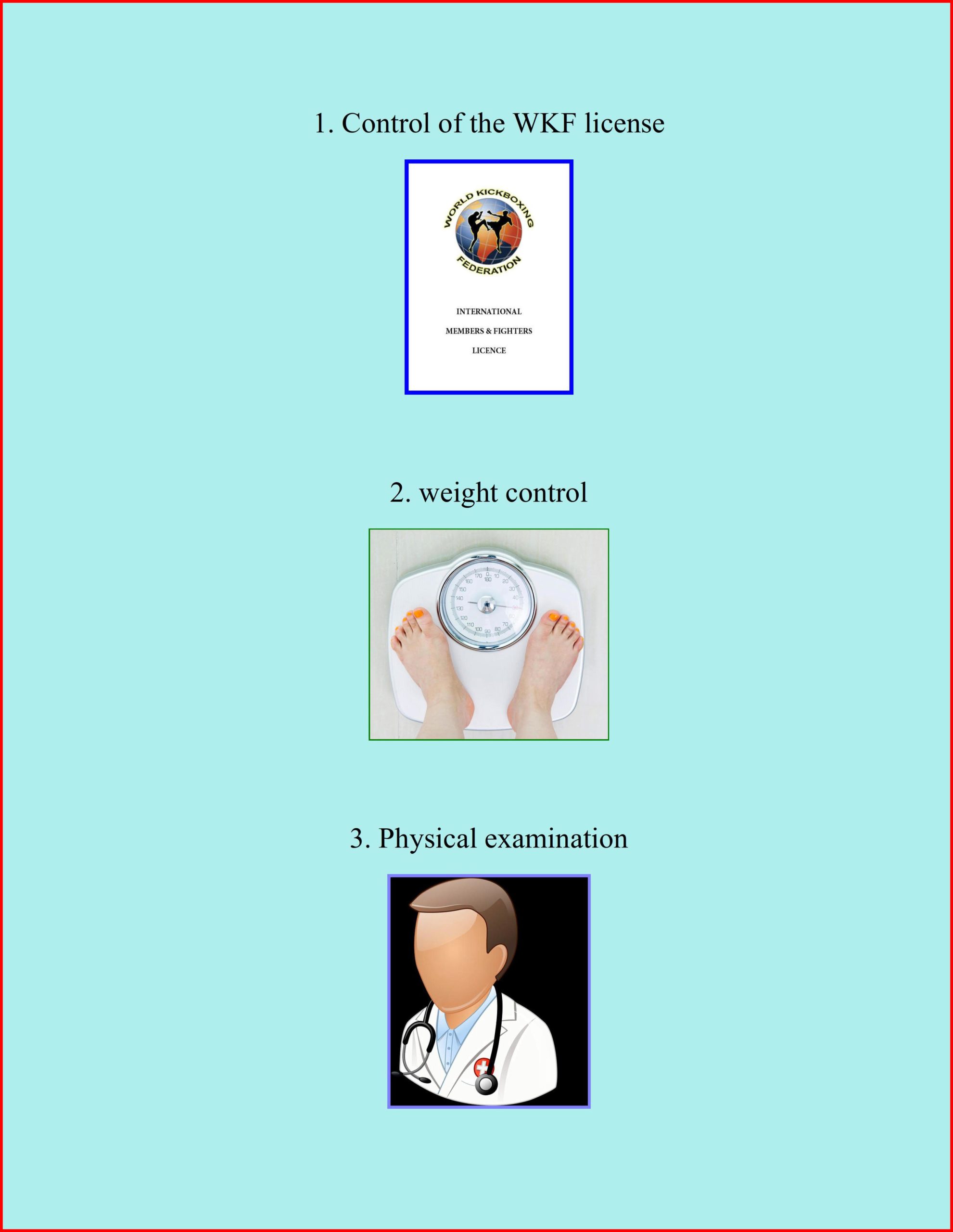 Hierbei ist es nicht relevant von welcher Organisation, Verband, Kontinent, Nation oder Club die Kämpferin oder der Kämpfer kommt. Gastkämpfer können mit einer WKF Tageslizenz und einer gültigen ärztlichen Bestätigung in den Ring steigen.